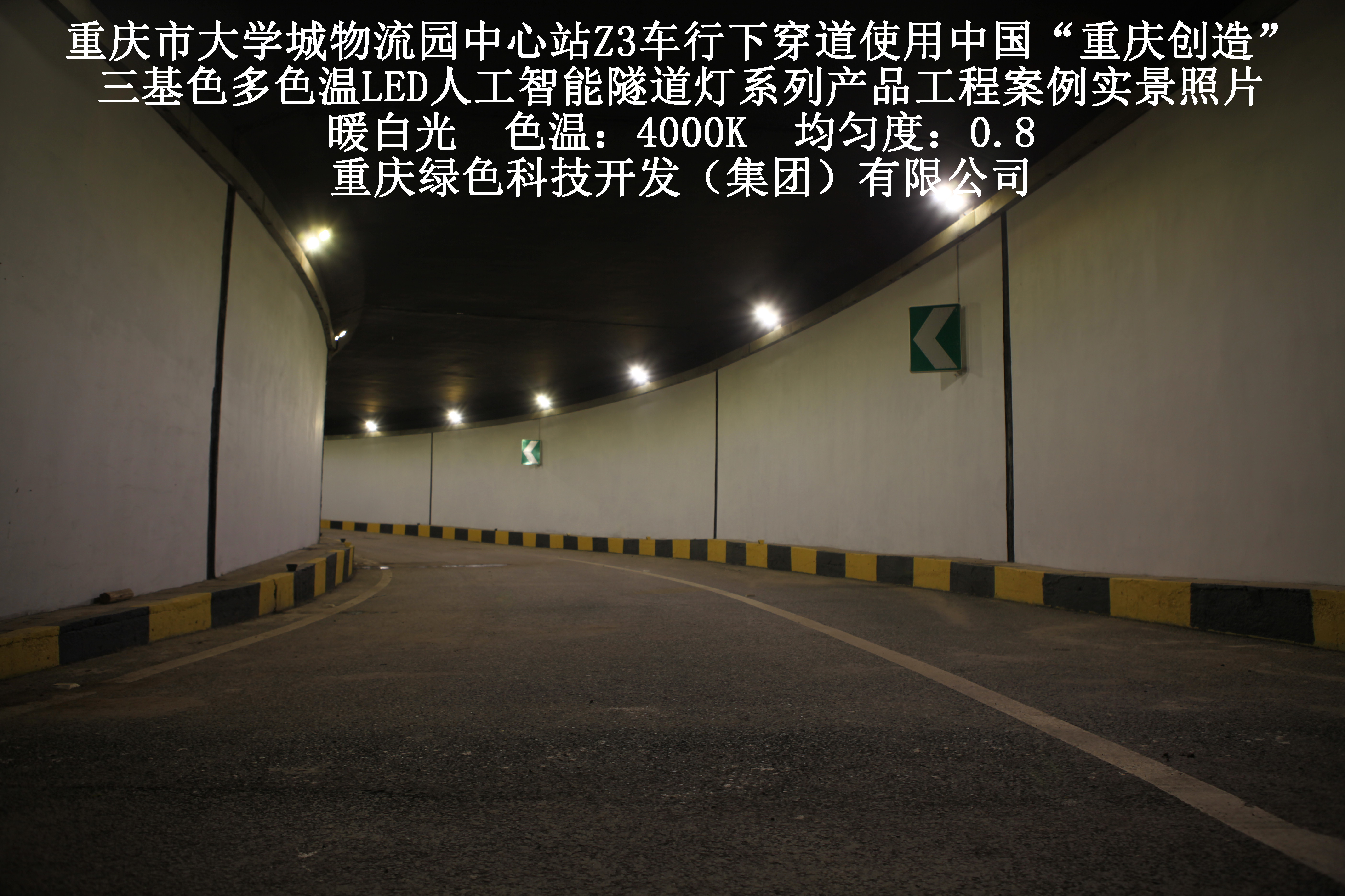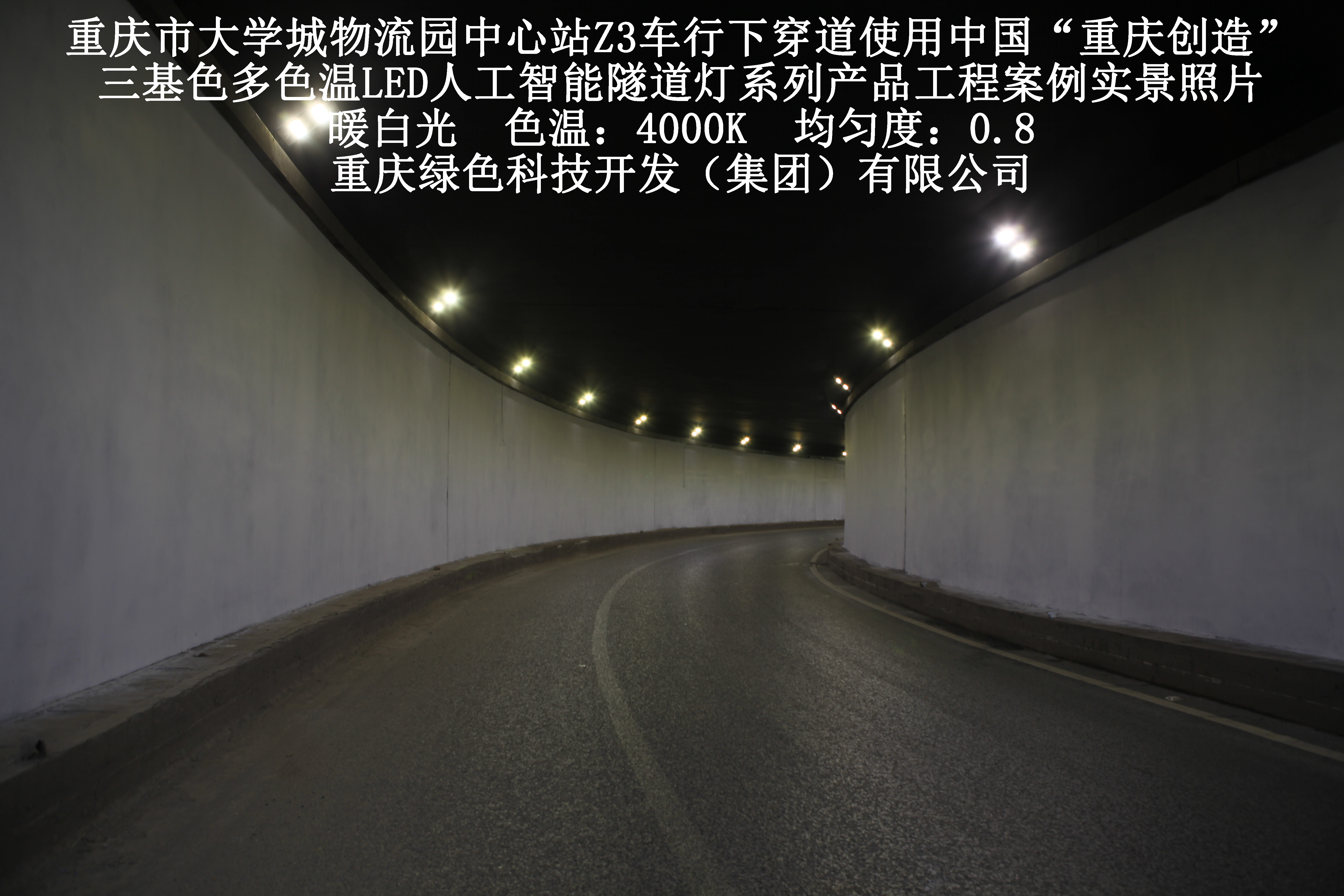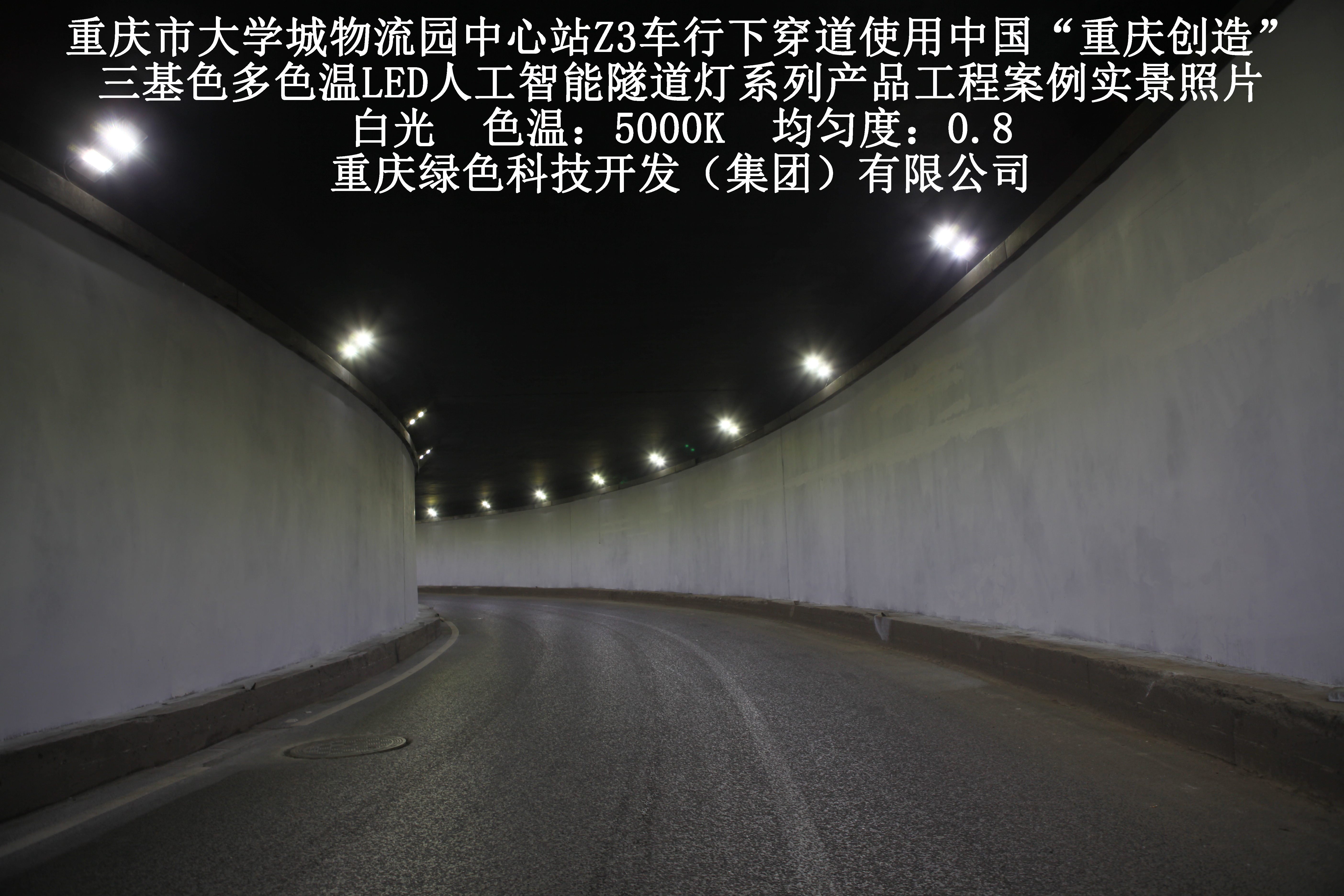 2019年3月,重慶市大學(xué)城物流園中心站Z3車行下穿道使用我司自主研發(fā)制造的,重慶“中國創(chuàng)造”三基色多色溫LED人工智能隧道燈系列產(chǎn)品,實(shí)施了市政設(shè)施品質(zhì)提升工程(工程案例實(shí)景照片附后)。此項(xiàng)目的實(shí)施,極大地提高了隧道內(nèi)照明清晰度、燈光均勻度、舒適度及照明安全性,實(shí)現(xiàn)了隧道照明系統(tǒng)的智能化管理。