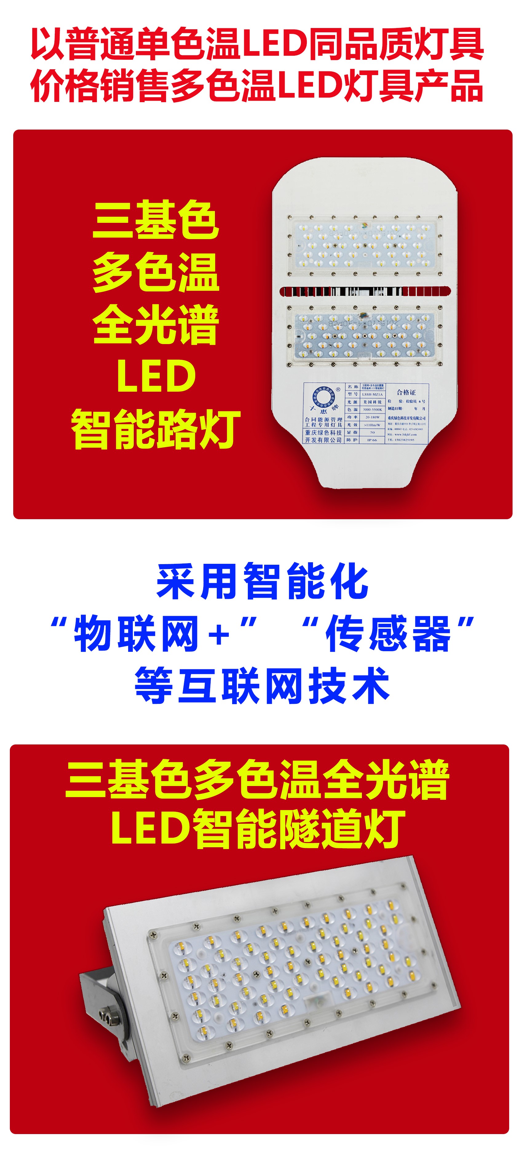 重慶“中國(guó)創(chuàng)造”三基色多色溫全光譜LED人工智能路燈技術(shù)特點(diǎn)介紹